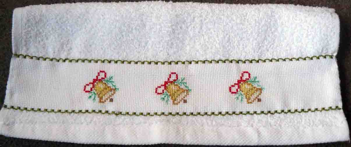 wit/groene ruit theedoek met rode Kerstrozen in kettingsteek